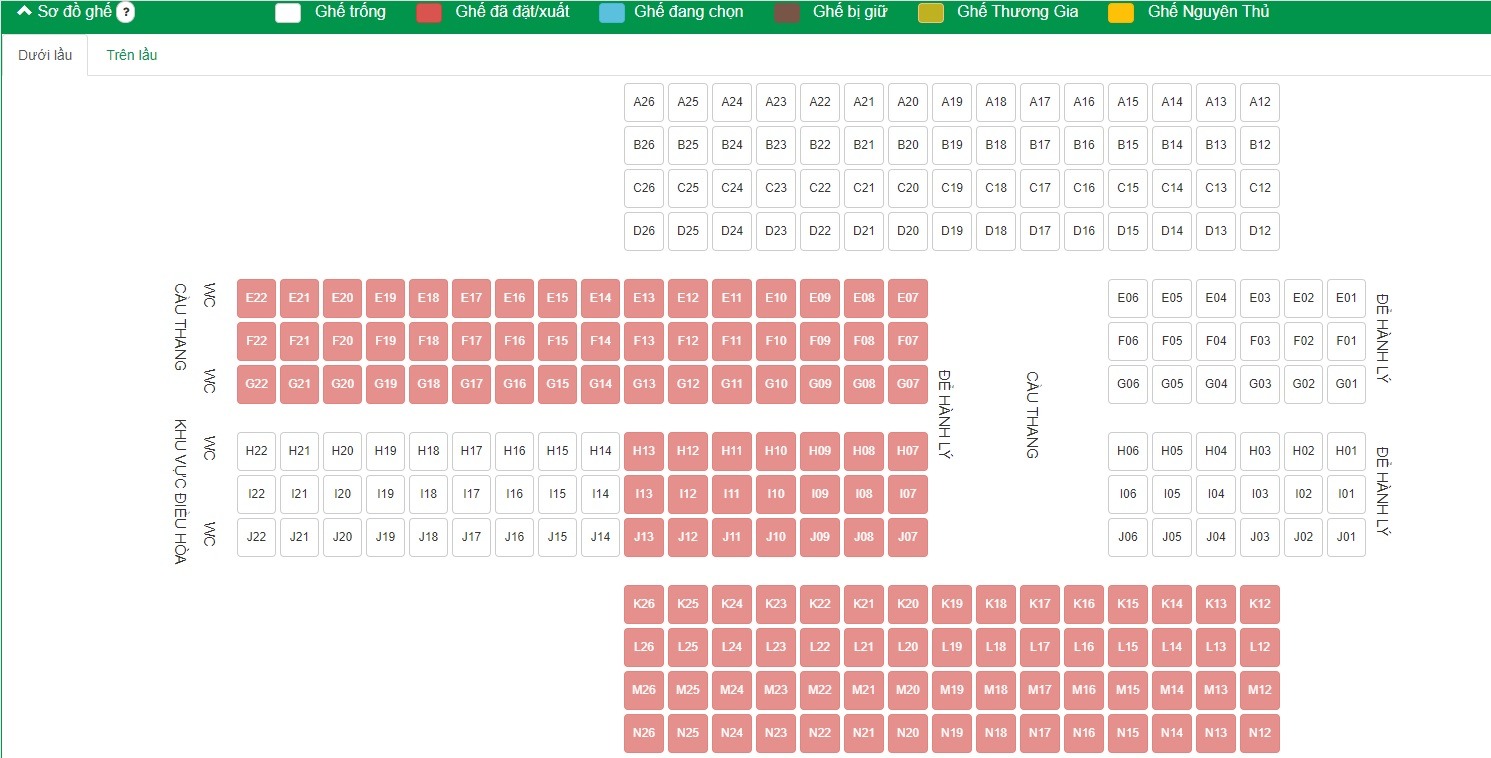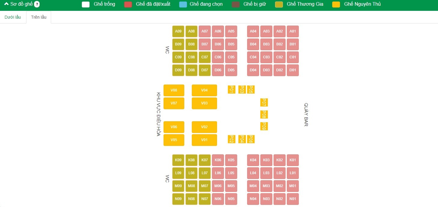 | Hạng VIP: Ghế có không gian rộng hơn ghế phổ thông, bố trí tại khu vực ưu tiên |